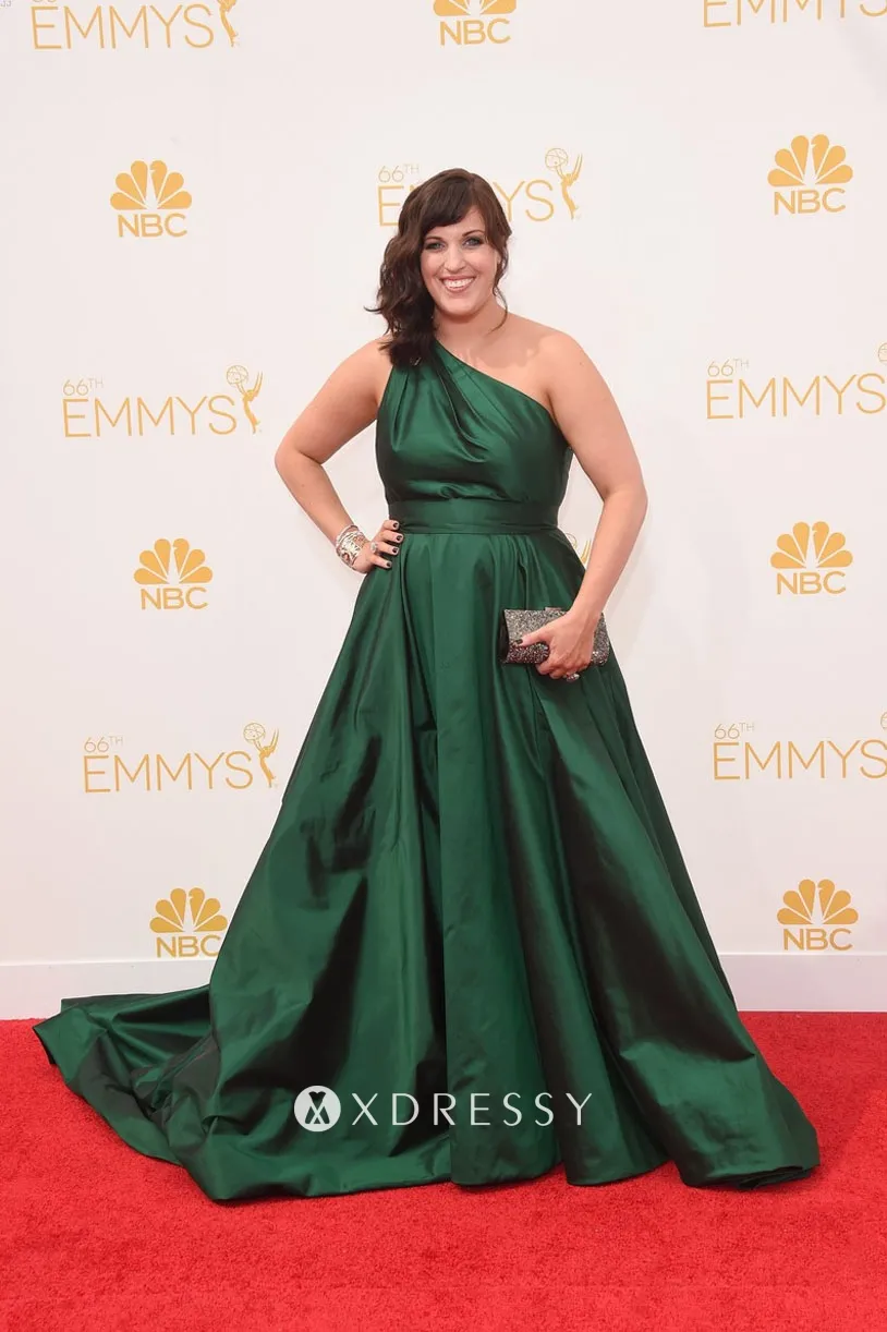 Allison Tolman looks gorgeous in her green one-shoulder dress while making a grand entrance at the 2014 Emmy Awards held at the Nokia Theatre L.A. Live on Monday (August 25) in Los Angeles.