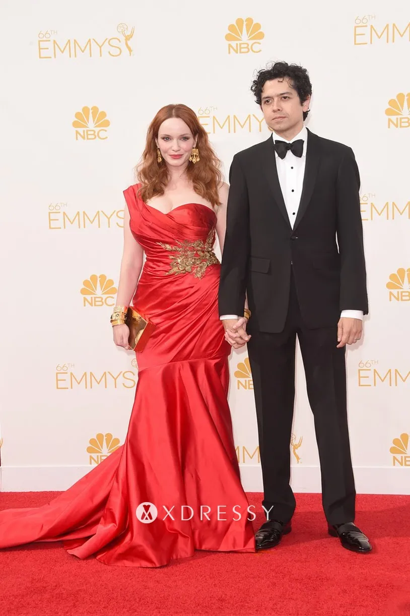 Christina Hendricks looks red hot while walking the carpet at the 2014 Emmy Awards. The "Mad Men" star wowed in a fire-red, one-shoulder dress. With her beachy waves and golden accents, Hendricks always gives us head-to-toe glamour.