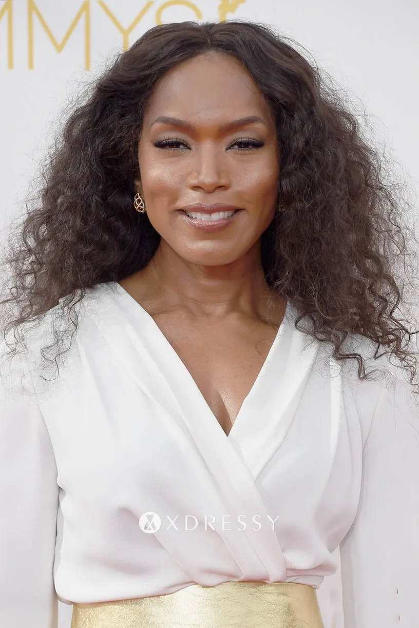 Kathy Bates wearing a pure white long-sleeved gown accented with gold chain while walking off the stage at the 2014 Emmy Awards held at the Nokia Theatre L.A. Live on Monday (August 25) in Los Angeles.