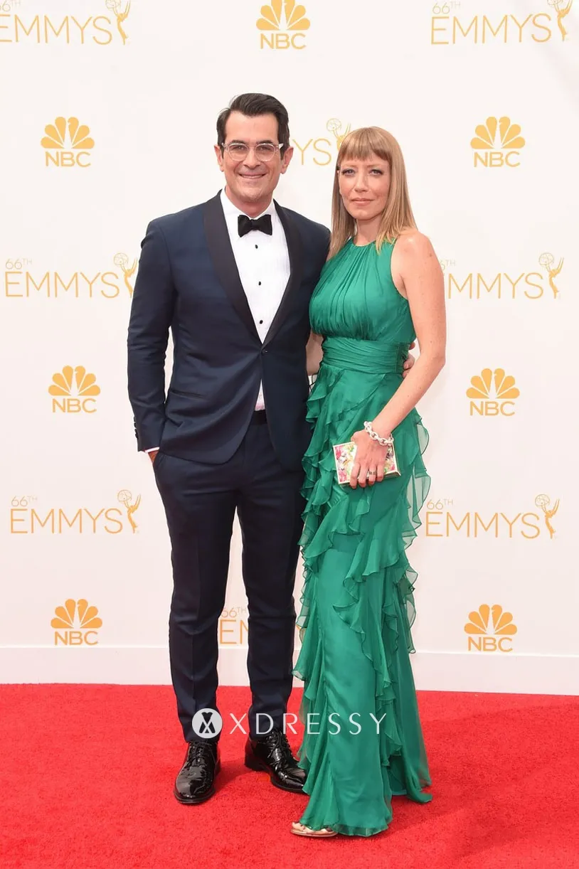 Ty Burrell stays close to his wife Holly at the 2014 Emmy Awards held at the Nokia Theatre L.A. Live on Monday (August 25) in Los Angeles. Holly wore a green ruffled formal gown.