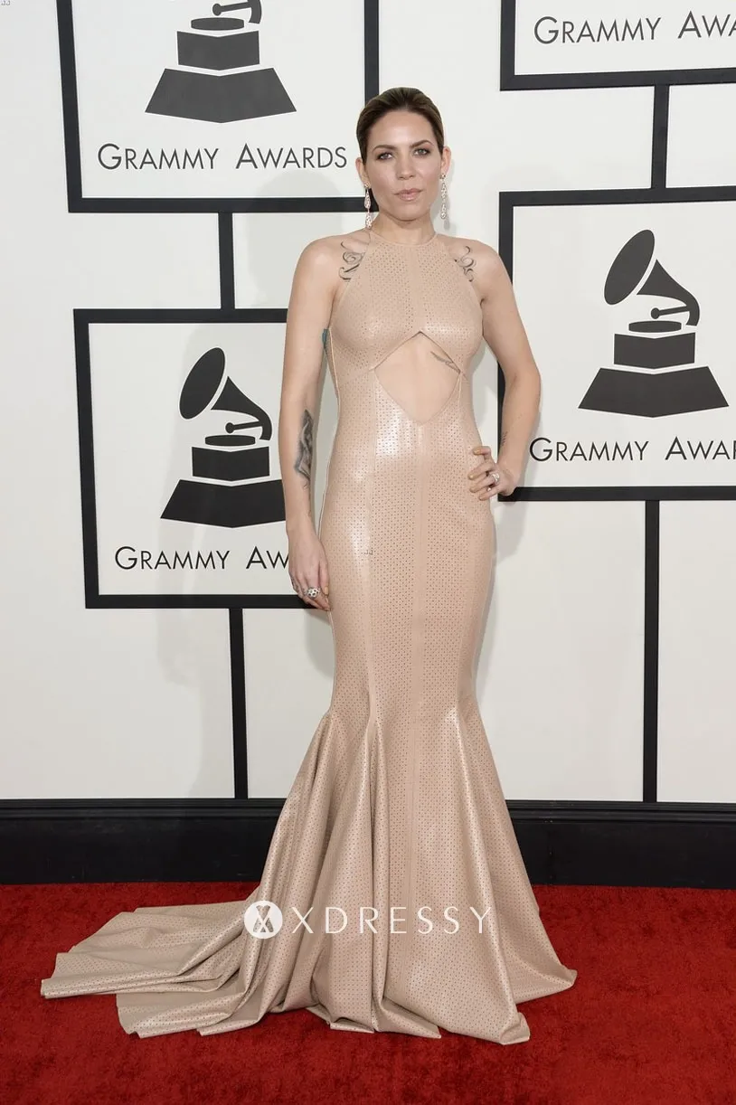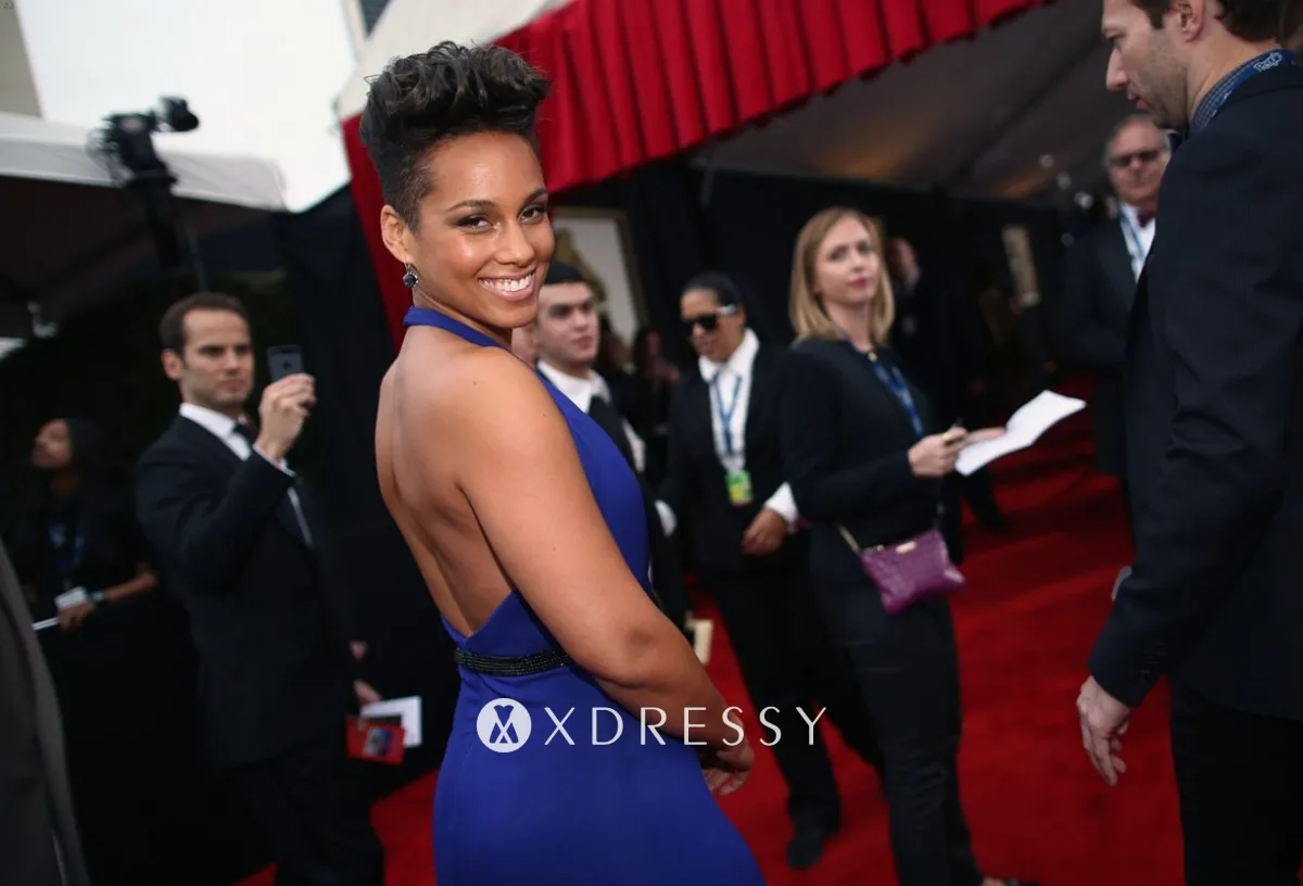 Alicia Keys dared to bare in cobalt blue at the 2014 Grammys. The singer and pianist wore a halter neck gown curve-hugging evening gown. It also dipped dangerously low, and she showed off some sideboob. Keys certainly wore the gown with confidence.