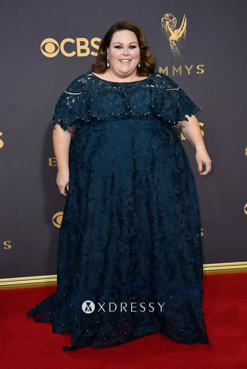 As she dressed to compete for the coveted golden Emmys statue, Chrissy Metz's 2017 Emmys outfit was a total red carpet win. She wore a custom lacy, midnight blue evening dress and proclaimed that she "felt like a princess" during her interview with E!
